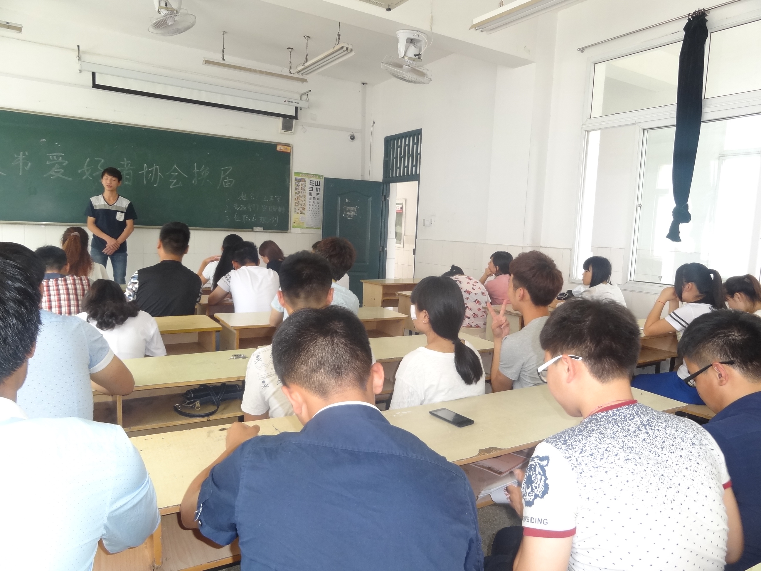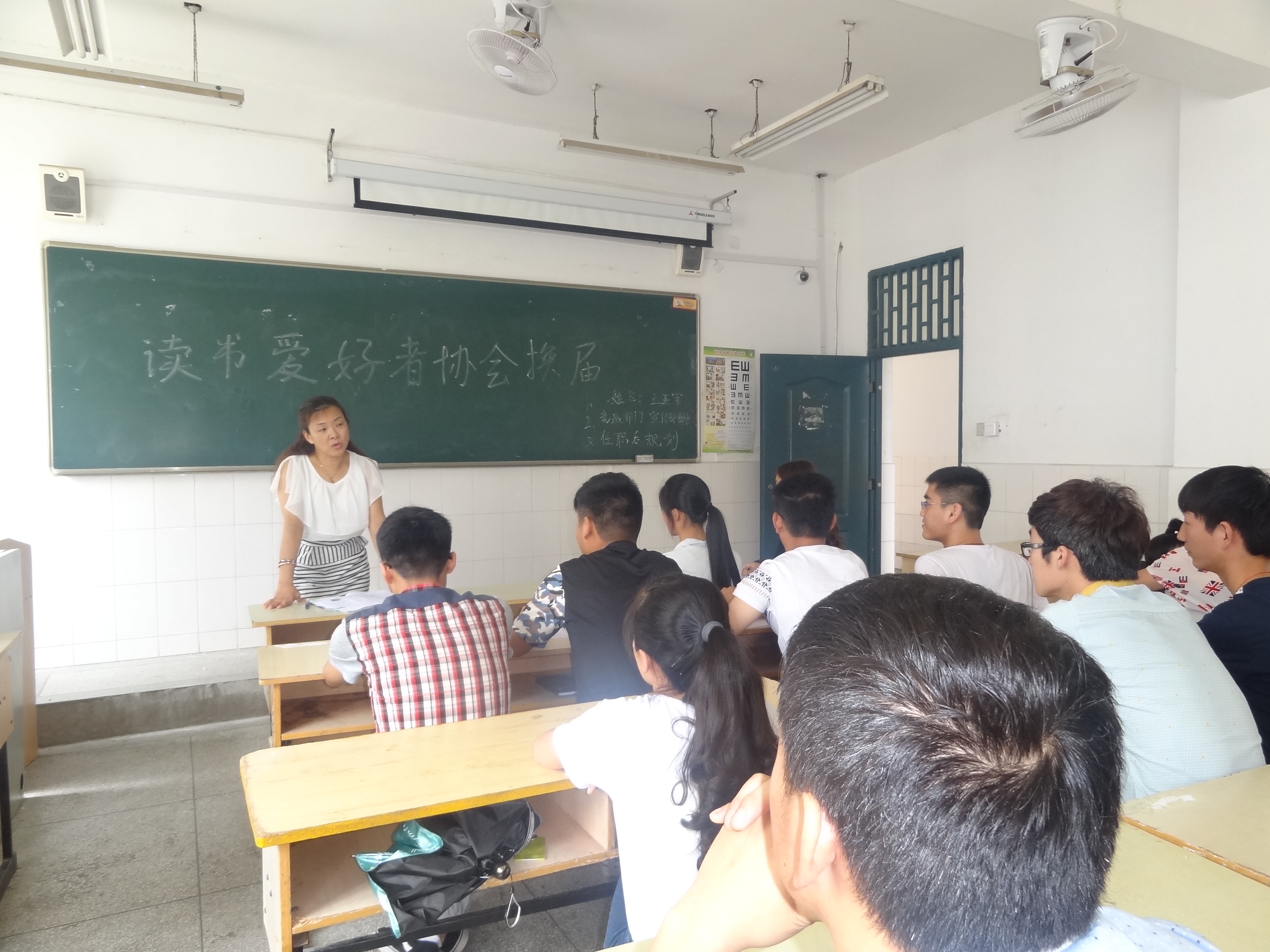 2015年6月15日,读书爱好者协会在2教203教室召开读书协会干部竞选大会。会议由协会指导老师尤朝莉主持,新老两届协会干部、干事参加了会议。