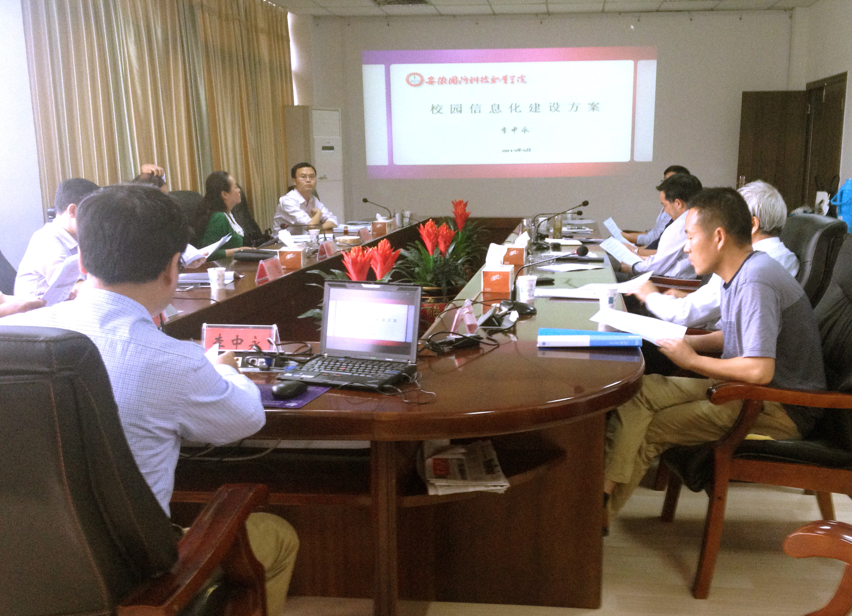 5月28日下午,我院数据中心服务器虚拟化建设方案论证会在行政楼四楼会议室举行,网络信息中心主任李中永主持会议,教务处长王志宏、信息工程系主任黄存东、学生处处长孙良平、总务处处长李大武和来自校兄弟院校4名校外专家等十余人参加了本次会议。