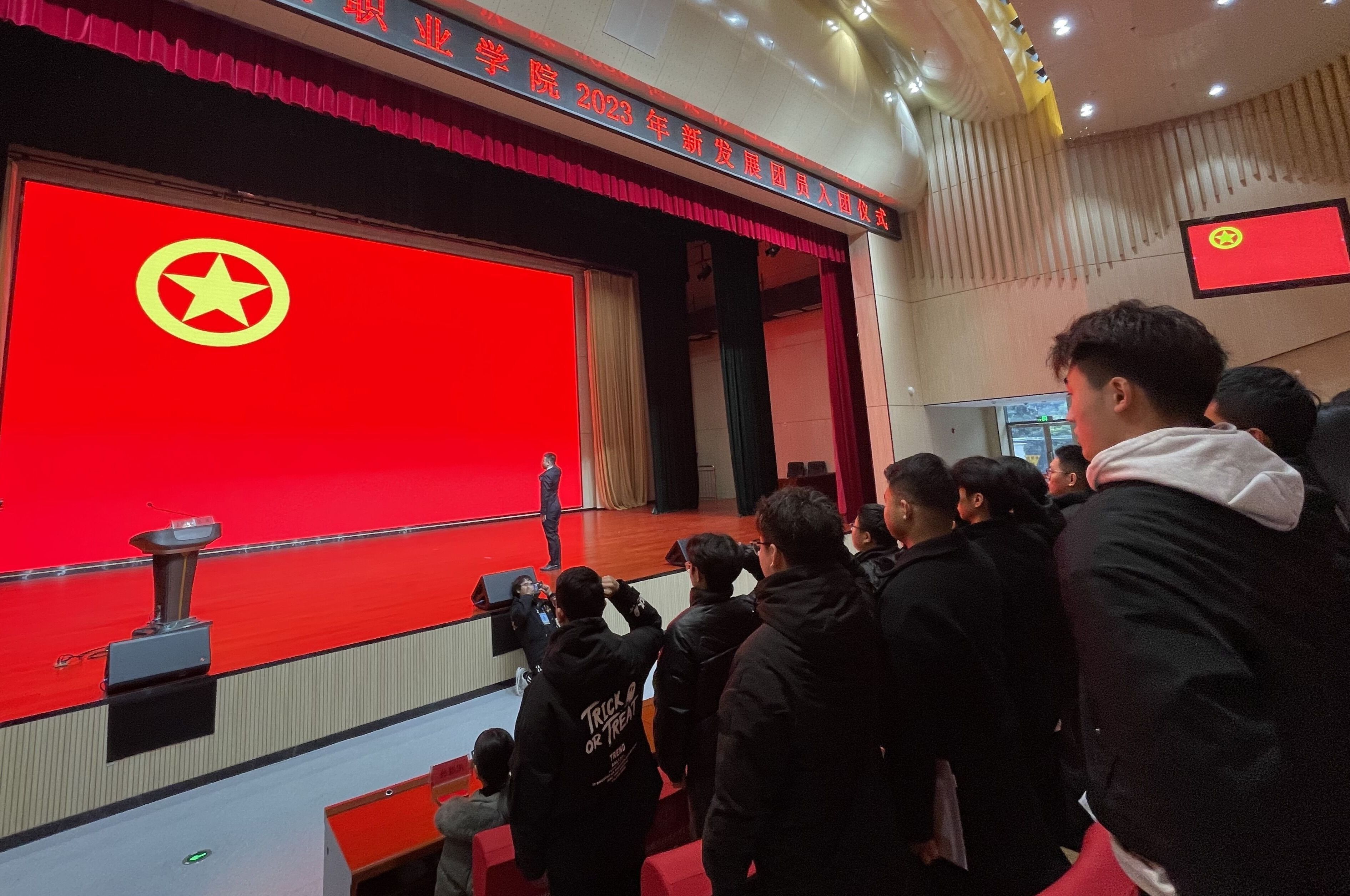 第二阶段,在庄严肃穆的国歌声中,入团仪式正式开始,张凤向大家介绍举行入团仪式的意义,宣读新团员名单,各学院团总支负责人为新团员颁发了团员证和团徽。随后,新团员们面向团旗,庄严宣誓。入团介绍人代表领学了《团章》中有关团员义务和权利的条款。新老团员代表依次发言,号召新老团员一如既往坚定理想信念,发挥模范带头作用。