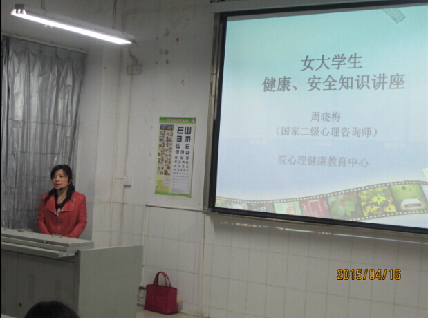 周晓梅老师的讲座分两部分。第一部分,她从女生特殊的生理、心理特点出发,重点阐述女生健康的重要性、相关疾病的预防和诊治。第二部分她重点强调了女生安全注意事项。
