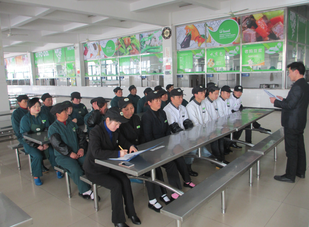近日,后勤服务中心在食堂一楼组织学校食堂员工进行培训。培训工作由食堂经理主持展开,具体内容包括食品加工的安全操作流程、餐具炊具的清洁消毒、健康证的办理、设备的安全使用、索证索票的规范工作、食品添加剂的管理等。