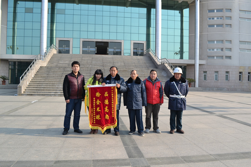 1月8日上午,寒冬腊月,情谊暖暖。在院安全保卫处杨振亚的带领下,建筑工程系14工程造价2班学生李钰将一面写有“品德高尚,拾金不昧”的锦旗送到中天安保公司学院项目部职工陈正西的手中,表达感激之情。