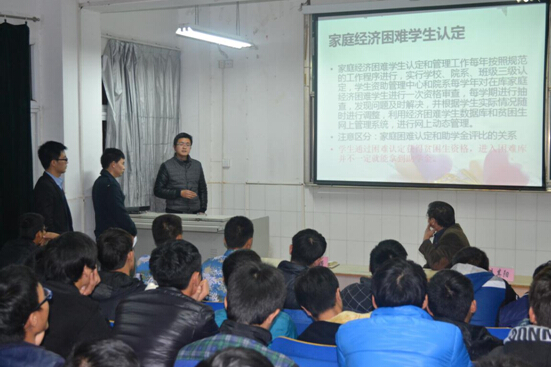 会上,系学生资助工作负责人朱其阳从学院奖助学金的评选条件和要求、国家助学贷款办理程序和要求、勤工助学的形式、困难补助的发放、绿色通道的办理、大学生医保报销等方面向同学们详细介绍了学院各项资助体系和资助政策。