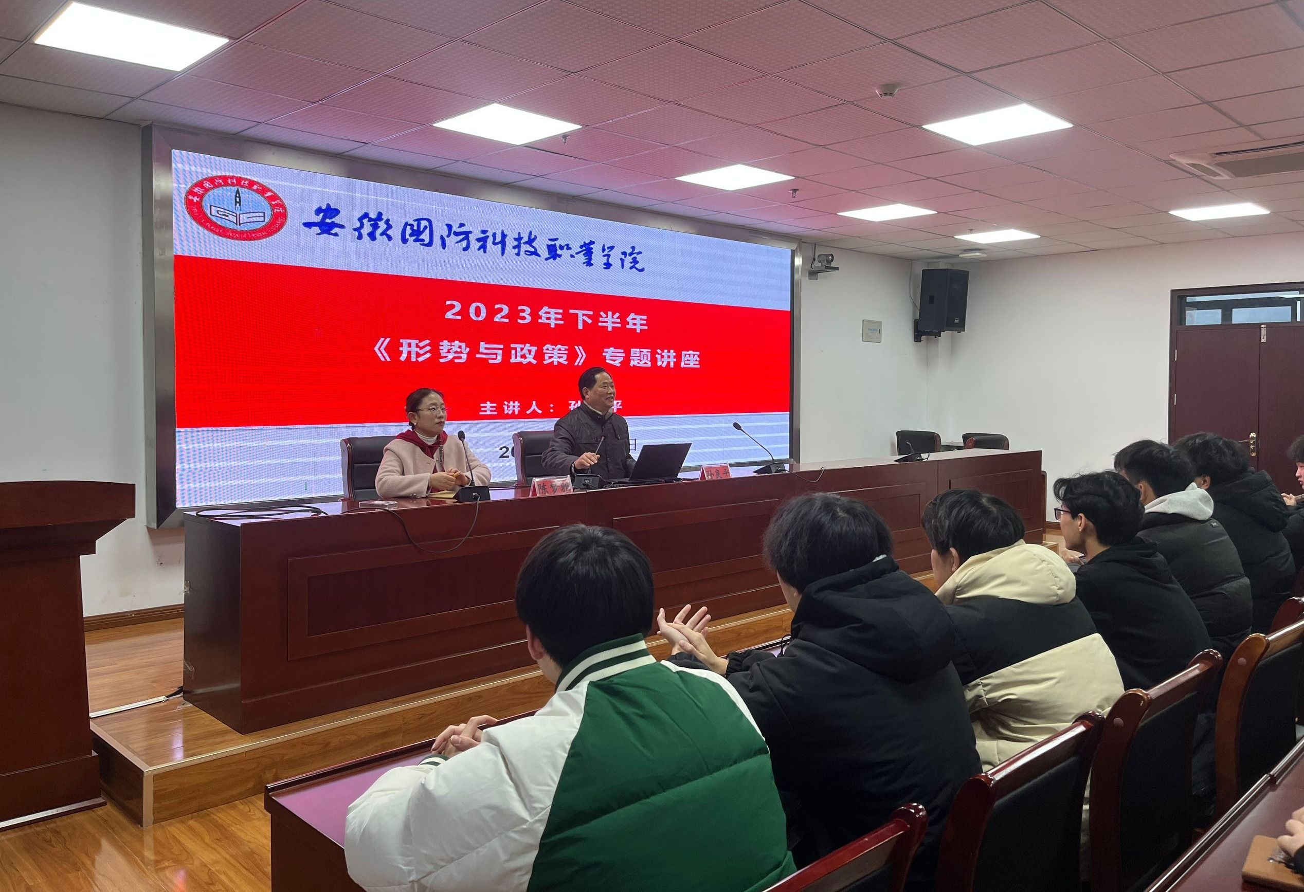 本网讯(汽车技术学院 陈梦雅)为深入学习贯彻习近平新时代中国特色社会主义思想和党的二十大精神,将立德树人和铸魂育人工作落实、落深、落细,12月29日,汽车技术学院党总支书记、院长孙良平为学院入党积极分子、入团积极分子讲授深生动的形势与政策课。