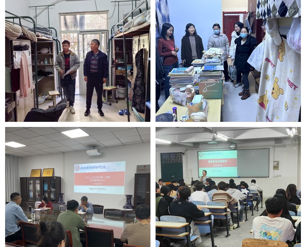 领导高度重视,深入宿舍排查安全隐患。城市建设学院党总支书记张宗江、党总支副书记叶高洁定期带领专、兼职辅导员深入学生宿舍,宣传教育宿舍安全管理的重要性,不定期以“四不两直”方式对学生宿舍开展安全专项突击检查,对检查出的问题进行通报、责令整改并“回头看”,推动宿舍安全管理工作“向前进”。
