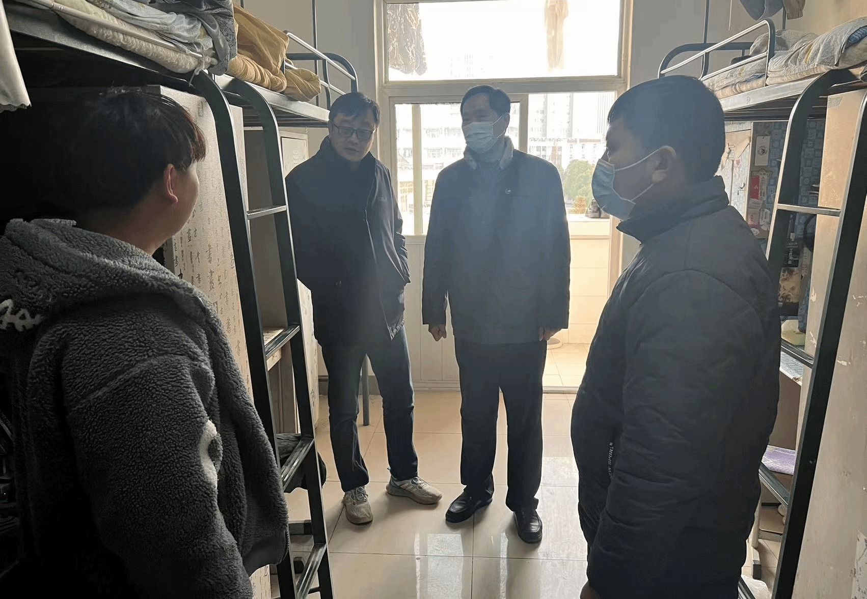 检查组逐一对学生宿舍进行卫生情况检查和安全隐患排查,检查发现,学生宿舍安全卫生状况整体良好,对排查中发现的卫生问题和安全隐患,相关辅导员做好详细记录,对学生进行教育引导并限时整改。检查过程中,各位领导和老师叮嘱同学们离校时务必开展宿舍卫生大扫除,妥善保管贵重物品,切断电源、水源,关好门窗,雨雪天气出行注意安全,到家报声平安,并祝福同学们度过一个平安祥和年。