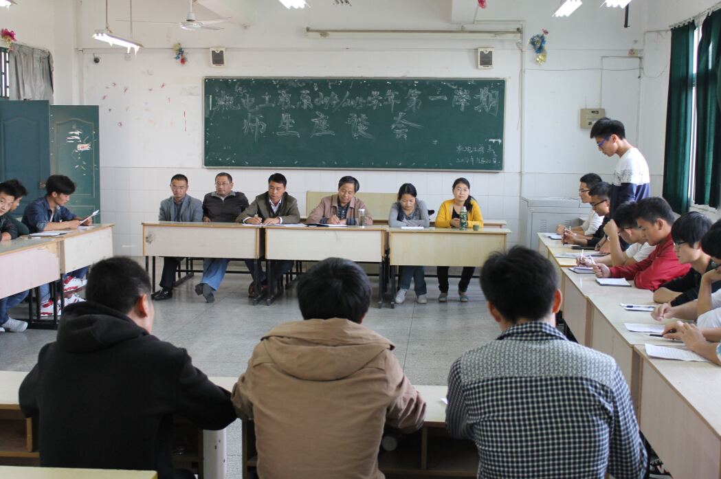 为了及时了解我系各班级本学期的班风、学风,以及各科任教师的教学情况、课堂管理情况,加强师生之间的沟通与交流,我系由系督导小组牵头,于10月22日下午2:30,在2号教学楼207、208教室,分别召开了14级(7个班)、12级和13级(共8个班)师生座谈会,每班3名学生代表及所有授课教师参加了本次会议。