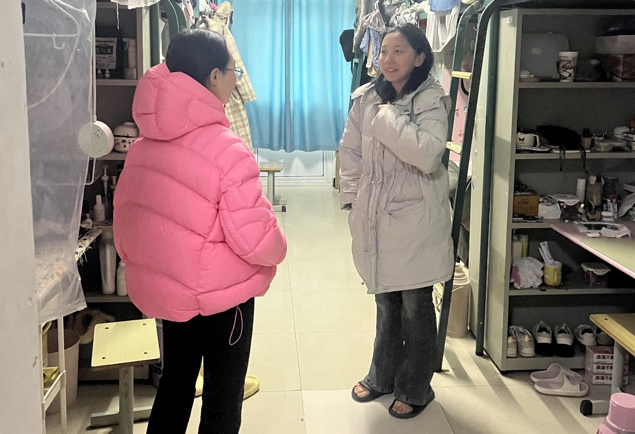 深入宿舍,送关怀暖人心。学院领导、辅导员共同深入宿舍走访,及时关注学生期末学习、心理健康、宿舍安全等各类问题。每到一间宿舍,老师们与同学们亲切交谈,认真倾听学生心声;提醒学生期末期间,认真复习备考,做到诚信考试;叮嘱学生做好日常防护、注意宿舍消防安全;听取学生对学院教育教学、宿舍管理等方面的意见和建议,完善各项服务;告知学生离校注意交通安全,确保安全到家。