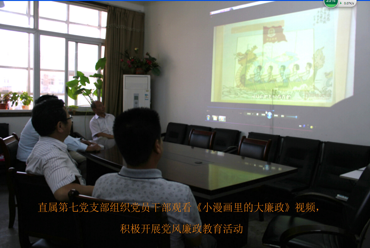 2014年10月10日下午,直属第七党支部在招生办会议室组织全体党员,认真观看了《小漫画里的在大廉政》视频,对支部全体党员干部进行了一次党风廉政教育活动。