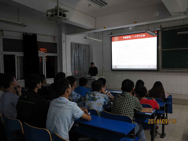 万事开头难。新生入学教育是大学育人的起点,是大学生涯的第一课,也是学生教育管理的重要环节。为了让新同学尽快熟悉校园环境及学生管理制度,适应大学生活,机械工程系下发了《关于做好2014级新生入学教育工作的通知》,从9月14晚开始,利用8个晚自习进行入学教育。