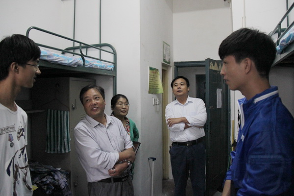 梁继会、黄存东一行先后查看了我系在7号楼、9号楼、3号楼的新生宿舍,对新生及其家长的到来表示亲切的慰问。在宿舍里,领导们和新生亲切地拉起了家常,问候了大家的生活习惯与日常起居,并嘱咐同学们要努力学习,健康生活。