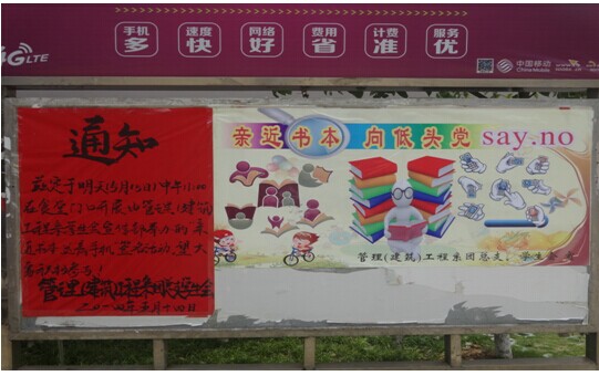 5月15日上午,由管理(建筑)工程系学生会举办的“亲近书本,远离手机”签名活动在院食堂对面正式拉开帷幕。活动得到了广大同学的积极报名和踊跃参与。