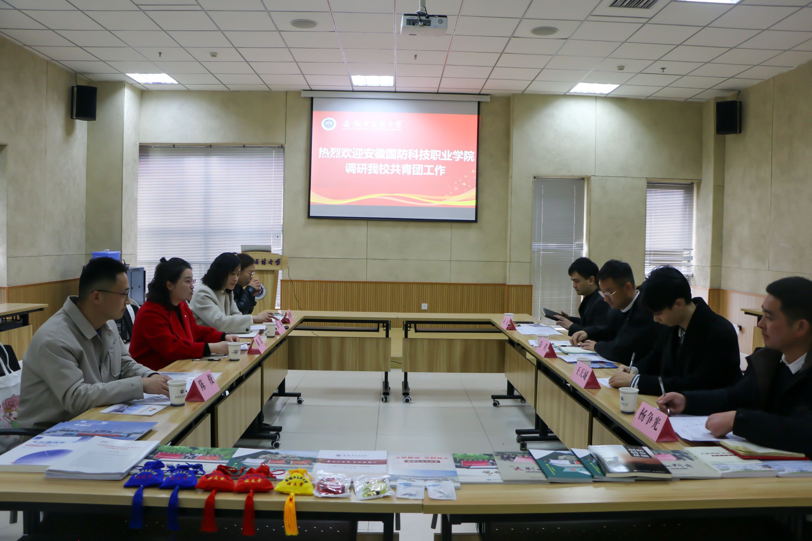 本网讯(汽车技术学院 陈梦雅)为进一步提升beat365共青团工作水平,促进共青团更好地服务学校发展大局,服务青年学生成长成才,3月13日,校党委委员、宣传部部长、团委书记陈思率队赴安徽中医药大学开展团学工作交流调研。校团委副书记张凤、汽车技术学院团总支书记陈梦雅、电气技术学院团总支书记陈俊陪同调研。安徽中医药大学团委副书记彭程、社团管理科科长孟南、素质拓展科主任杨争光出席交流座谈会。