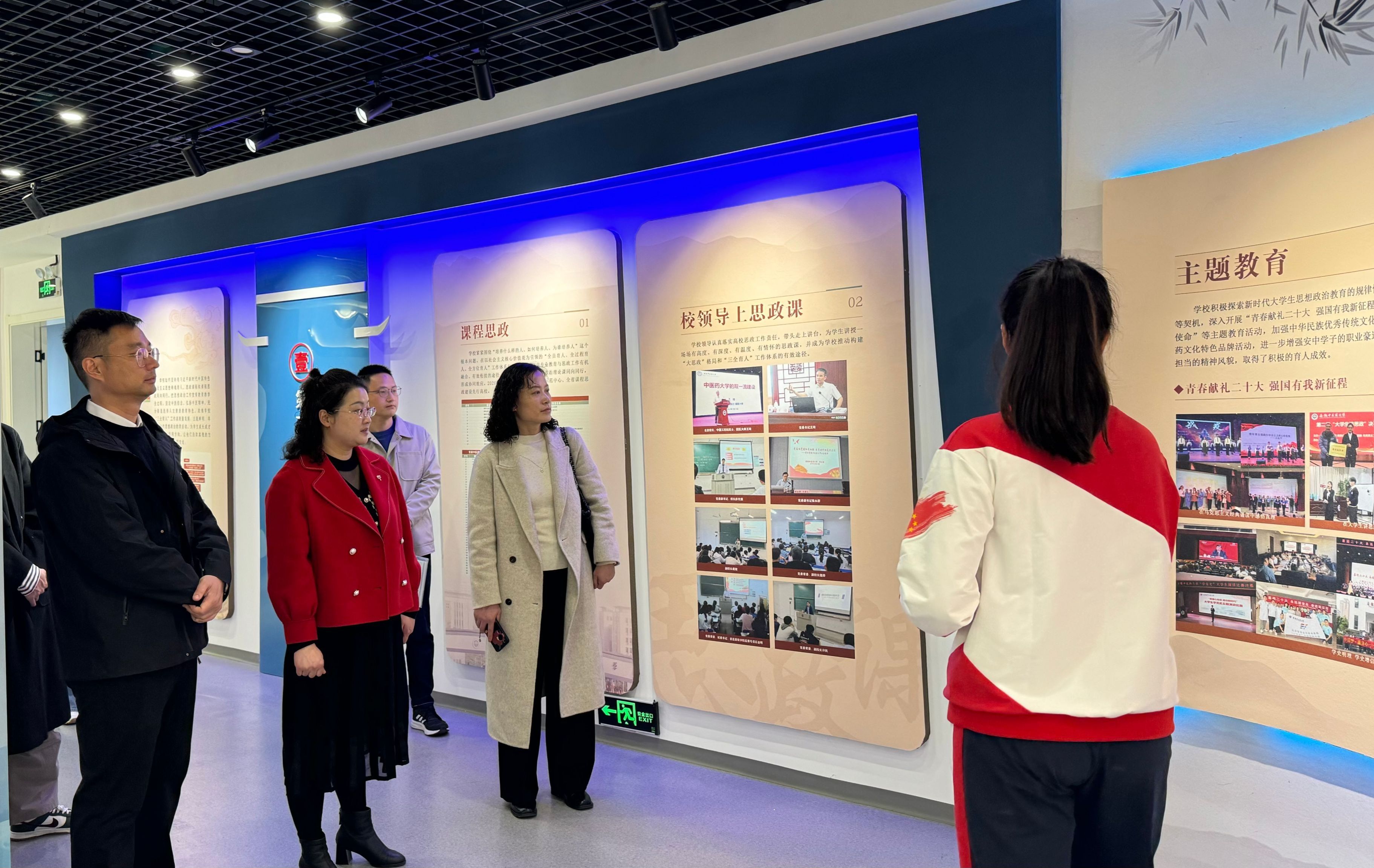 会前,陈思一行在彭程的陪同下参观了安徽中医药大学素质教育展厅、团建文化长廊、团学风采展、青年艺术中心、团学组织工作室等场所。