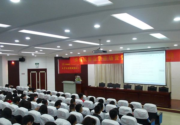 本次报告会由娃哈哈皖南市场拓展部陈晓春经理和协会指导老师杨学分主讲,陈经理主要讲述了市场营销大赛策划案书写的实践经验,并展示了安徽省高校的成功案例。杨老师就大赛的意义、具体内容、技巧、活动安全等方面做了详细介绍,并要求学生用心、用脑、多动手,鼓励学生积极参与,做到理论实践相结合,提高了同学们报名的积极性。