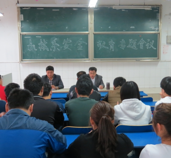 4月23日下午,机械工程系在二号教学楼105教室召开安全教育工作专题会议,传达学习了学院和省有关安全工作会议精神,部署该系五、六月份安全维稳工作。机械工程系党总支书记吴方庭出席会议并讲话。机械工程系全体学生会干部和各班班长、团支部书记参加会议。会议由系团总支书记孙策主持。