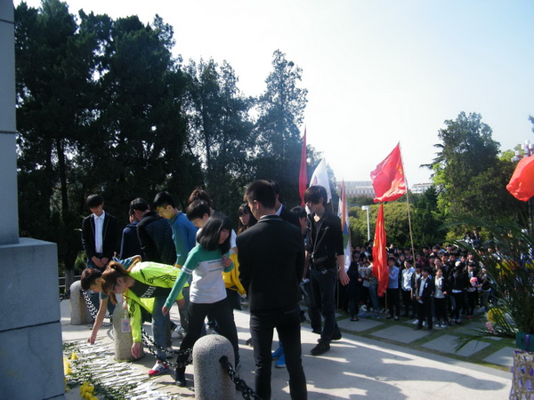 同学们对着先辈们的纪念碑宣誓,宣誓一定会继承伟大先烈们的爱国热忱,继承先烈们不屈不挠、艰苦奋斗的精神,不断的坚定自我,超越自我,立志为实现中华民族的伟大复兴贡献力量。(学会通讯员:李天晨)