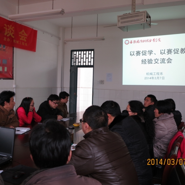 为进一步提升职业技能大赛引领制造类专业技术技能型人才培养水平,机械工程系于3月7日下午在系会议室召开以赛促学、以赛促教经验交流会,系党总支书记吴方庭、系副主任李存鹏、系属2014年省级职业技能大赛各参赛队指导老师参加会议,会议由系主任束传俊主持。