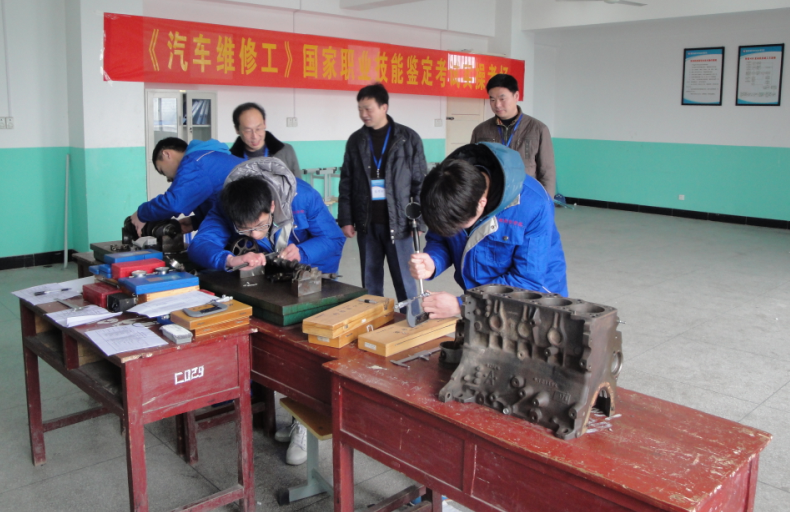 本次考试分为理论考试和实操考试两个部分,理论考试共设有2个考场,严肃考场纪律,保证考试公正、公平地进行。实操考试在各实训大厅举行,共设4个考场,参考的37位学员精神饱满、沉着冷静、稳定发挥,大部分顺利通过了汽车发动机测量、汽车电器设备检修、汽车故障诊断、汽车发动机拆装四个模块的实操考核。