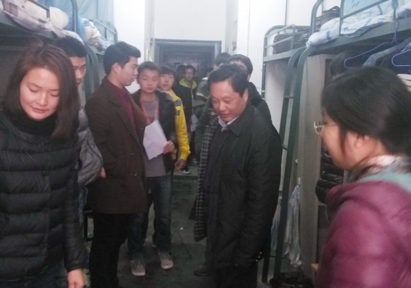 梁继会一行详细了解了宿舍的安全、禁烟及卫生等情况,并亲切的与同学们讨论了关于禁烟的必要性、抽烟的危害,帮助大家解答了一些住宿安全的问题。