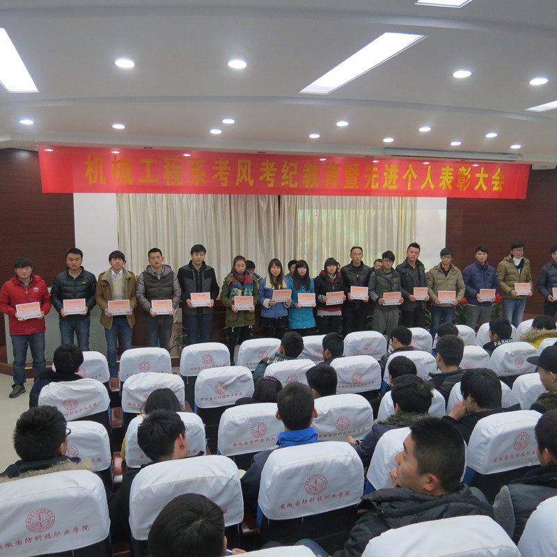 12月25日下午,机械工程系考风考纪教育暨先进个人表彰大会在图书馆报告厅隆重召开,机械系主任束传俊、党总支书记吴方庭、团总支书记孙策、辅导员张艳华、杨静出席了会议,各班班长、团支书、寝室长及获奖学生代表参加了会议,会议由系团总支书记孙策主持。