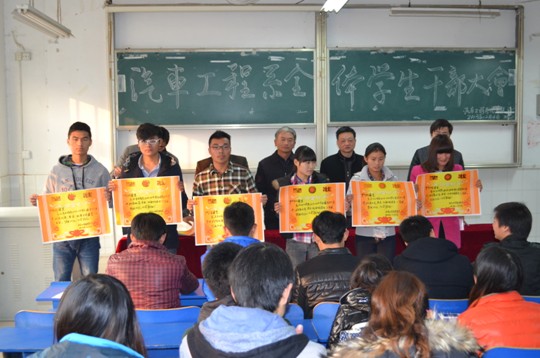 余桂刚宣读了汽车工程系首届“寝室文化节”与“智慧巧手”活动中获奖的寝室与个人名单,并由参会的系领导为获奖同学颁发奖状。(供稿人:余桂刚)