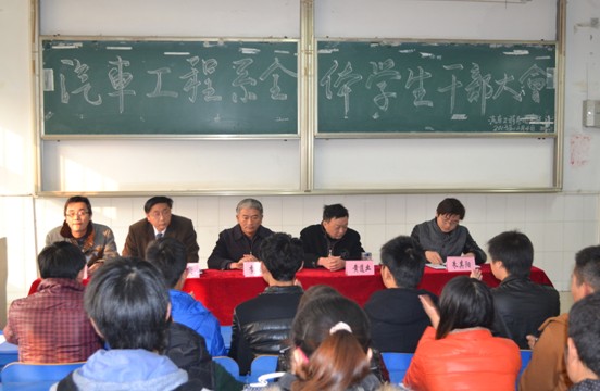 12月4日下午,汽车工程系在2号教学楼105教室召开了全体学生干部大会。汽车工程系党总支书记李维革、系主任黄道业、副书记叶启衡、团总支书记余桂刚、13级辅导员朱其阳参加会议。