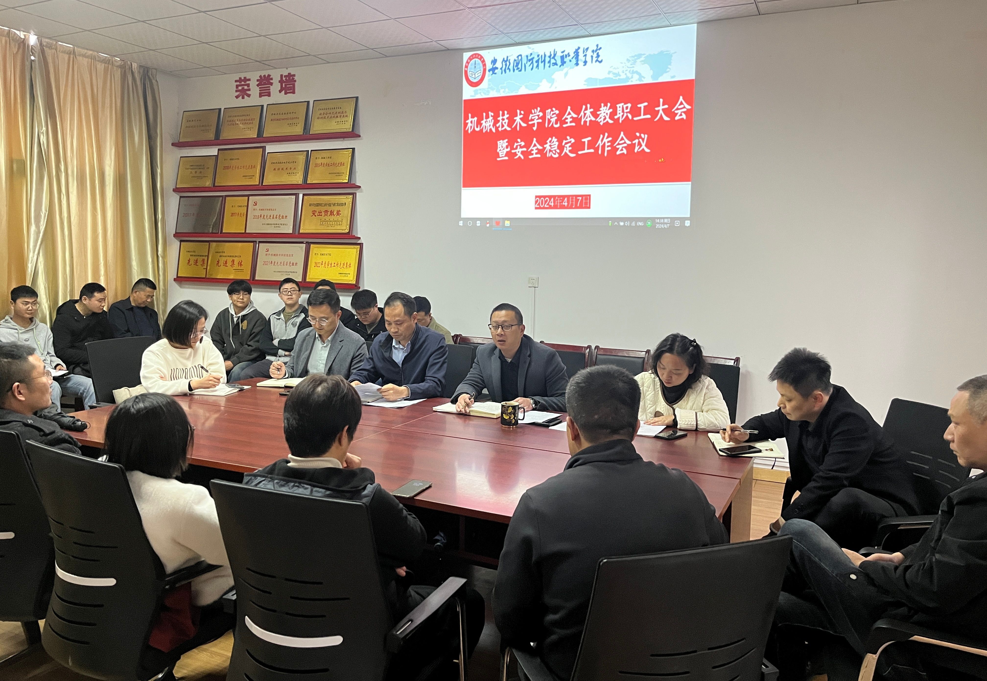 本网讯(机械技术学院 吴天跃)为深入贯彻上级决策精神,积极推动近期工作的高效有序开展,机械技术学院于4月7日下午召集全体职工举行会议。会议由学院副院长熊良平主持,副书记张红军、全体教职工及辅导员出席此次会议。
