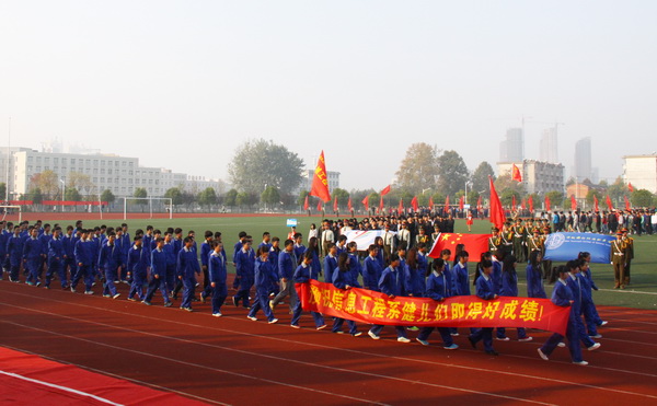 精彩亮相开幕式,信息方阵赢喝彩。8时整,开幕式正式开始。在引人注目的运动员入场仪式上,信息工程系方阵运动员身着整齐的服装,伴随着响亮的口号,迈着坚定的步伐走向主席台。他们个个充满自信,斗志昂扬,走出了信息人的青春风采,赢得场上观众的欢呼声和掌声。