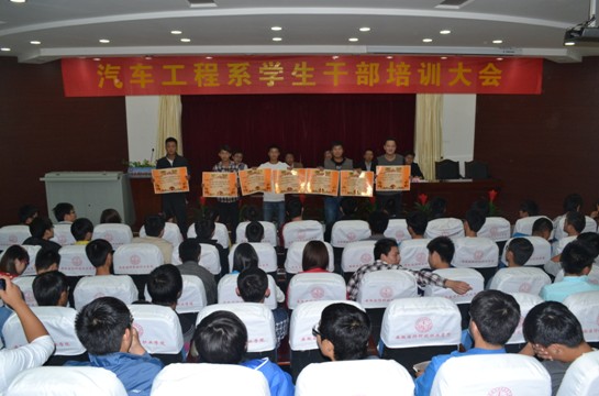 为提高学生干部的综合素质,增强同学们的自我教育、自我管理和自我服务意识,10月23日,汽车工程系在图书馆报告厅举办了学生干部培训大会。汽车工程系党总支书记李维革、党总支副书记叶启衡、系副主任邹华东、13级辅导员朱其阳和全系学生干部参加会议。