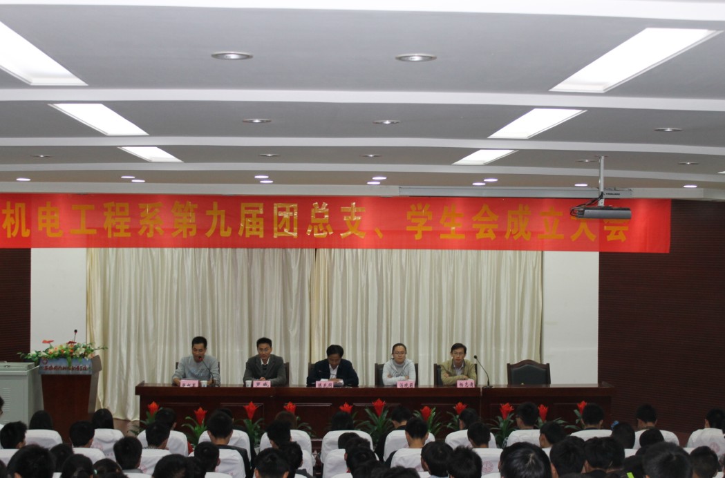 10月15日晚,机电工程系在学院报告厅隆重召开第九届团总支、学生会成立大会。机电工程系党总支书记陈兆同、党总支副书记罗威、团总支书记张红军、辅导员汤晓莉和杨志清老师出席会议。第九届团总支、学生会全体成员和12级、13级全体学生干部参加大会。