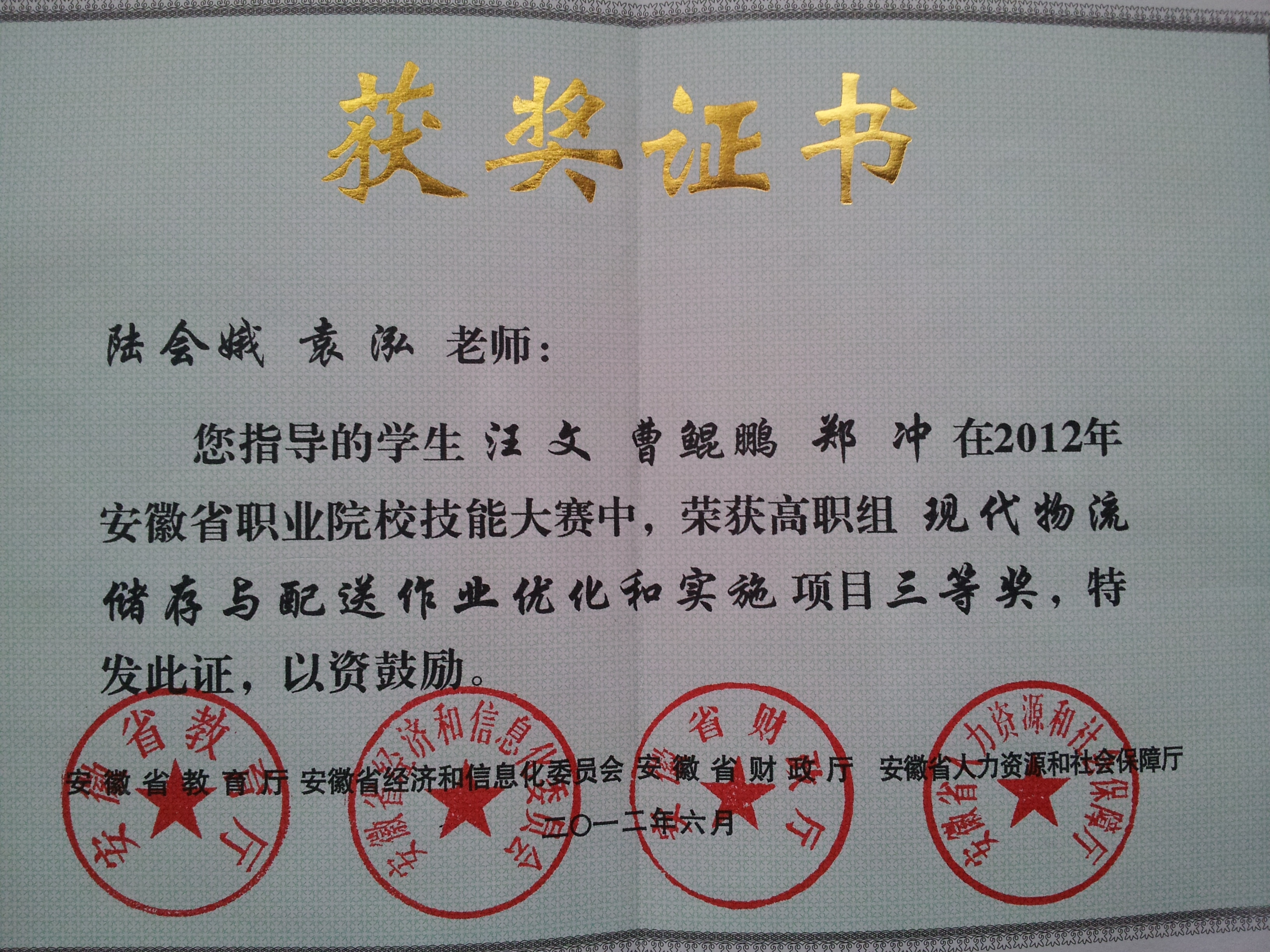4月6-7日,2013年安徽省职业院校技能大赛(高职组)“现代物流存储与配送作业优化设计和设施”赛项在安徽商贸职业技术学院举行,来自全省30所高职院校的30支代表队参加了比赛,经过激烈角逐,学院代表队取得了一等奖(第三名)的好成绩。