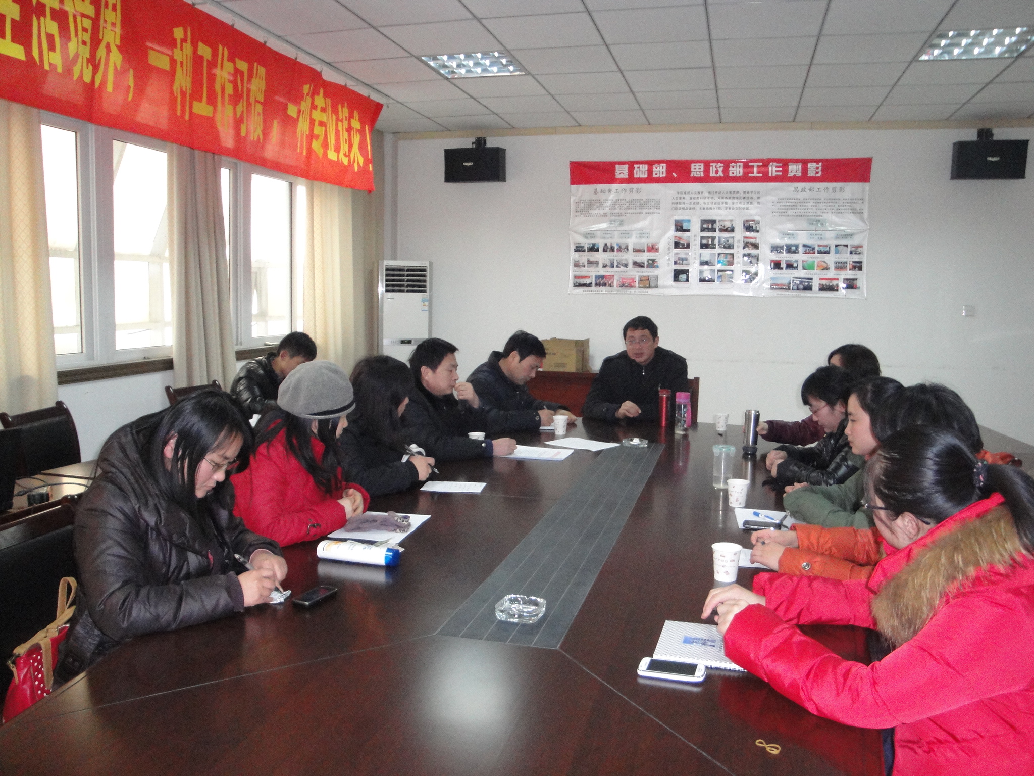 根据我院大学生的英语实际情况,为提高我院公共英语课的针对性和实效性,培养学生英语应用能力和可持续发展能力,1月9日下午,基础部在行政楼五楼会议室召开“英语课程教学改革研讨会”。会议由基础部副主任陈功立主持,基础部主任吴方庭、教务处副处长李中永、英语教研室主任吴国强及全体英语教师参加了研讨会。