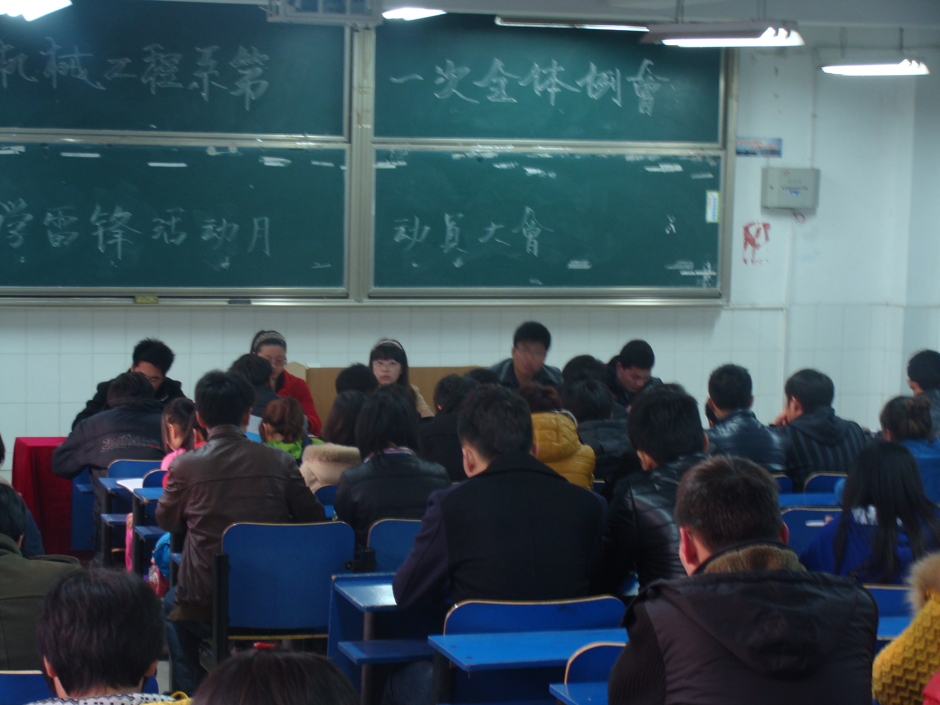 系学生会主席汪东发言,对学生会上学期的活动做了全面总结,并针对本学期学生会的主要工作做了计划,他要求,为了打造一支爱学习,爱吃苦的团队,每位学生会干部都应当严格要求自己,以身作则,做到”人人有事做,事事有人做。”要求各部门对于此次“学雷锋活动月"都要动起来,认真做好自己的本职工作。