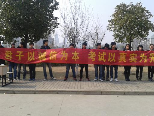 本次活动以“君子以诚信为本,考试以真实为先”为主题,倡导同学们端正考试态度,切实提高自己的学习效率,强化诚信考试观念,加强学风建设,同时提醒大家认真复习,为考试做好充分准备。同学们经过条幅时,都积极参加了本次活动,充分表明了自己诚信考试的决心。