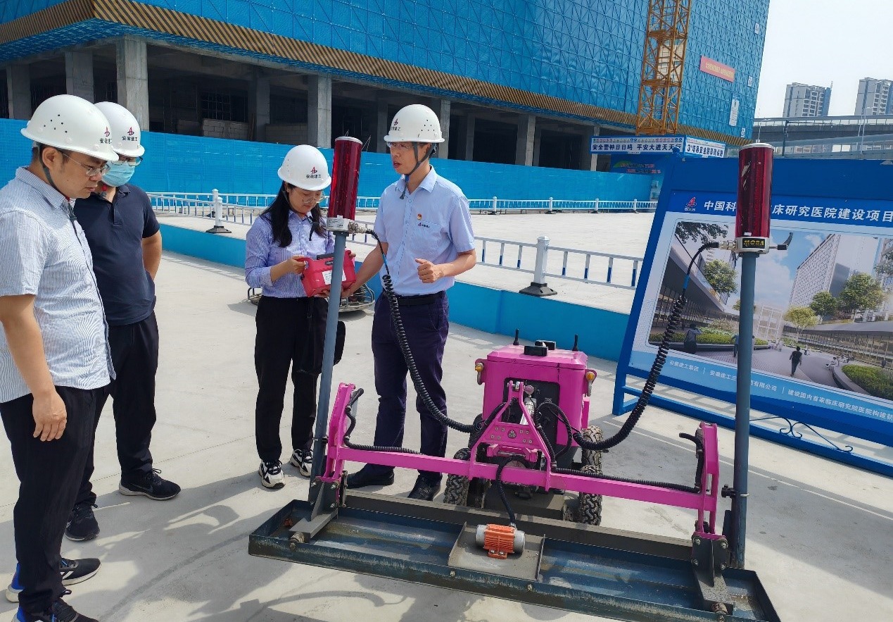 在建工三建集团相关人员的陪同下,王红林一行首先实地考察、观摩了建工三建集团在建的“中科院临床研究院”项目,参观了企业的生产车间、智能化施工中心,实操了企业的施工机器人,王红林对建工三建集团在工程建设、项目管理及智能化施工等方面取得的成就给予了高度评价。