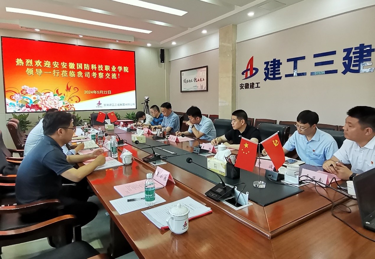 本网讯(城市建设学院 袁小永)5月22日,城市建设学院院长王红林一行赴安徽建工三建集团有限公司洽谈校企合作事宜,深入了解企业经营发展现状,探讨双方在人才培养、科技创新等领域的合作潜力,推动校企深度融合,安徽建工三建集团有限公司党委委员、副总经理张志刚等热情接待。