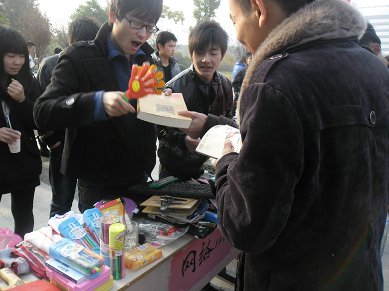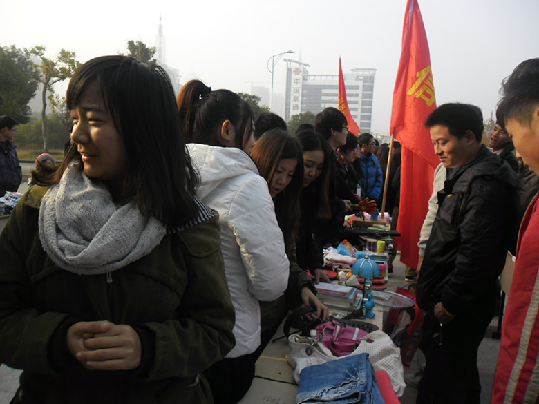 11月24日清晨,当第一缕阳光洒向大地时,信息系各个班就忙碌开了。在学院图书馆门前广场上,不时看见急匆匆搬桌子布置展台的义卖志愿者们,他们正在为“奉献一份爱获一片天“义卖活动精心准备。