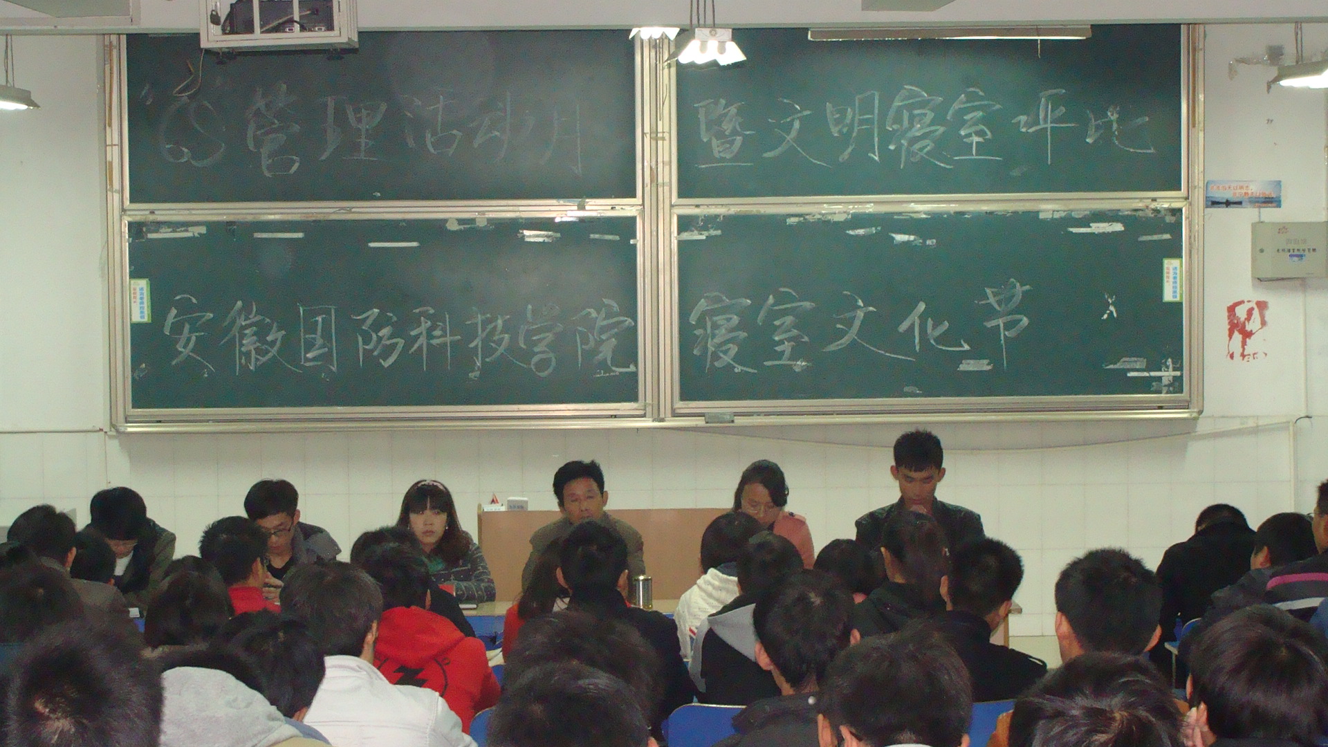 11月15日下午5点半,在二号教学楼105教室机械工程系6S管理活动月暨文明寝室评比活动隆重拉开序幕,党总支书记束传俊,10级辅导员张艳华,11级辅导员杨静,全系各班班长、团支书、寝室长及学生会部分成员出席了次会议。