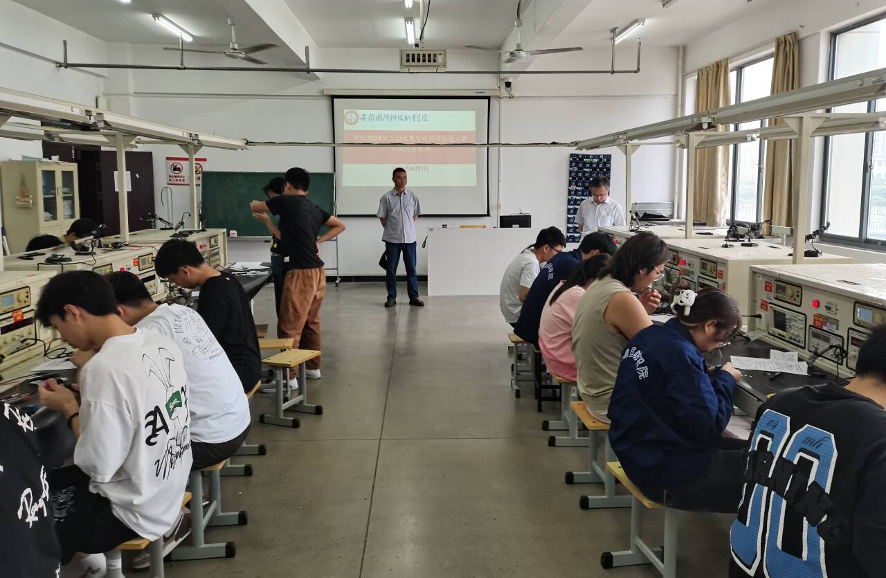 本网讯(电气技术学院 江治国)为深入贯彻党的二十大精神,认真落实《中共安徽省委安徽省人民政府关于加快职业教育改革发展服务现代化美好安徽建设的意见》,深入推进学校“双高计划”建设,培养具有创新精神和实践能力的高素质技术技能型人才,持续推进“以赛促教、以赛促学、以赛促改、以赛促建”,不断提升学生的专业技能和职业素养,由电气技术学院承办、自动化创新协会和船舶爱好者协会协办的2024年学校自动化类专业职业技能大赛,于6月1日在电气技术学院智控技术实训中心顺利举行。