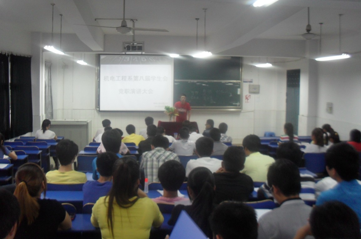 5月29日晚,机电工程系团总支在二栋教学楼105教室召开第八届学生会竞职演讲大会,出席本次会议的有党总支书记孙良平、副书记叶启衡、团总支书记刘严及学生会全体成员。