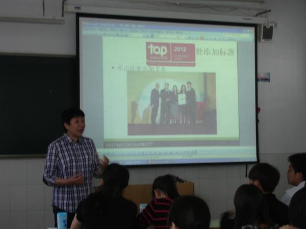 万豪国际集团与我院专业教师一起就旅游服务与管理专业的人才培养目标的定位、课程设置、实践教学与课堂教学关系、技能训练、能力培养等方面进行了深入的研讨,并在旅游服务与管理专业建设和发展上的战略合作达成意向性协议。会后,陈经理给相关专业学生做了一场精彩的报告。