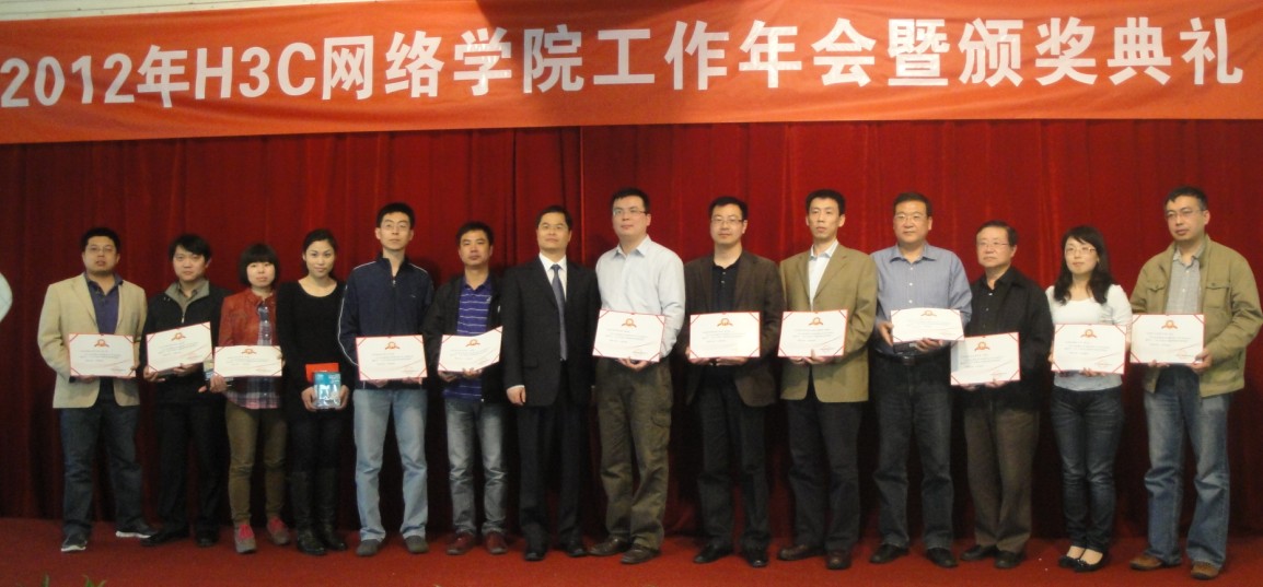 2012年4月14日,杭州华三通信技术有限公司(简称H3C)在杭州召开2012年H3C网络学院年会暨颁奖典礼,我院信息工程系以出色的教学质量及学生技能考证成绩赢得“2011年度H3C优秀网络学院”称号,系主任黄存东荣获“2011年度H3C网络学院优秀管理者”称号,王胜老师获得了“2011年度H3C认证优秀讲师”称号。姚快乐等6位同学荣获2011年度H3C优秀网络人才奖学金及助学金。