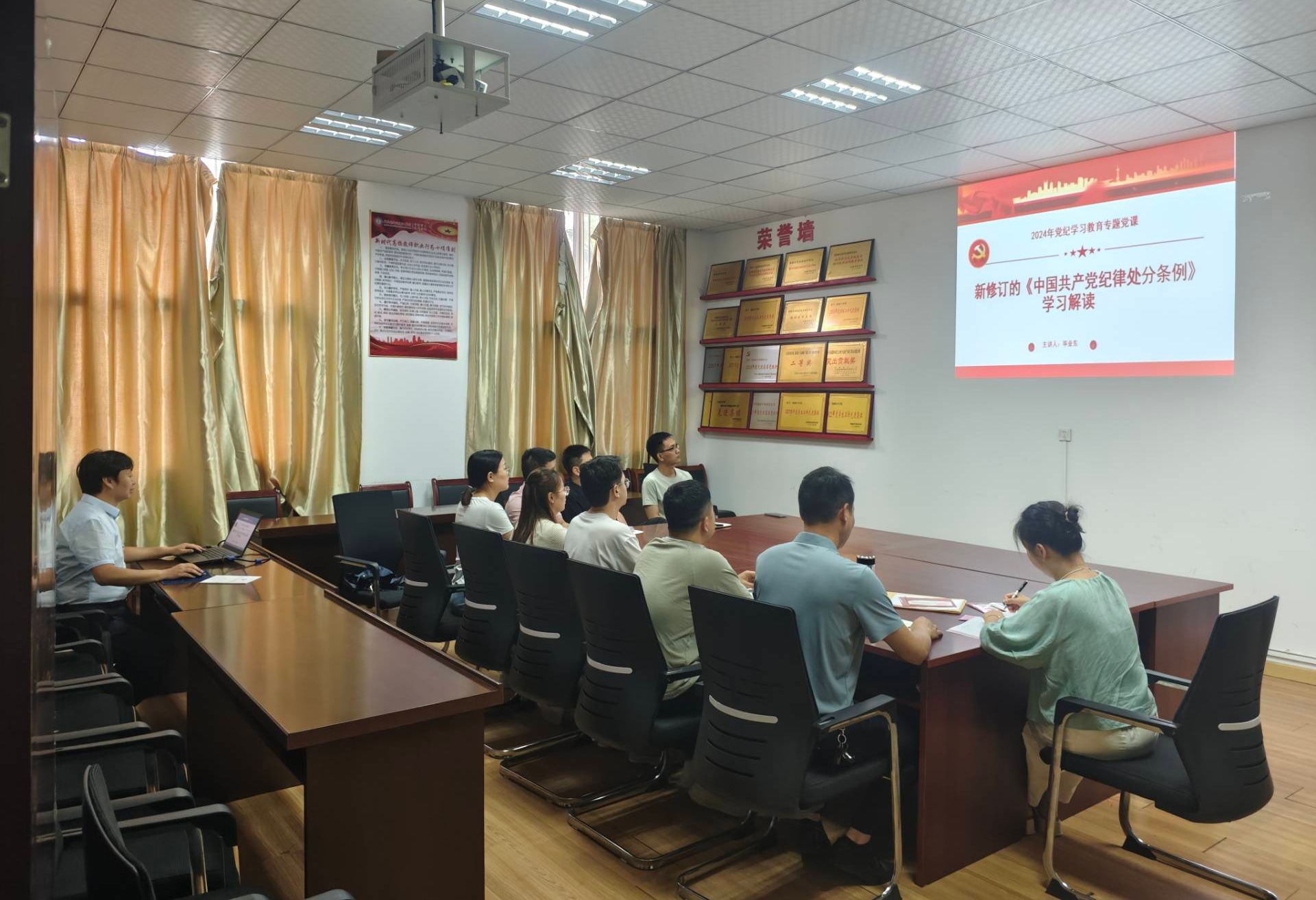 支部书记毕亚东为全体党员上了一堂题为“新修订的《中国共产党纪律处分条例》学习解读”党纪学习教育专题党课。党课内容围绕《条例》的修订背景、主要变化、重点条款等方面进行了系统讲解和深入剖析。毕亚东强调广大党员同志当以此为契机,叩开“学习之门”,常开“自律之门”,在“学纪、知纪、明纪、守纪”中,争做“明白人、规矩人、清白人”。