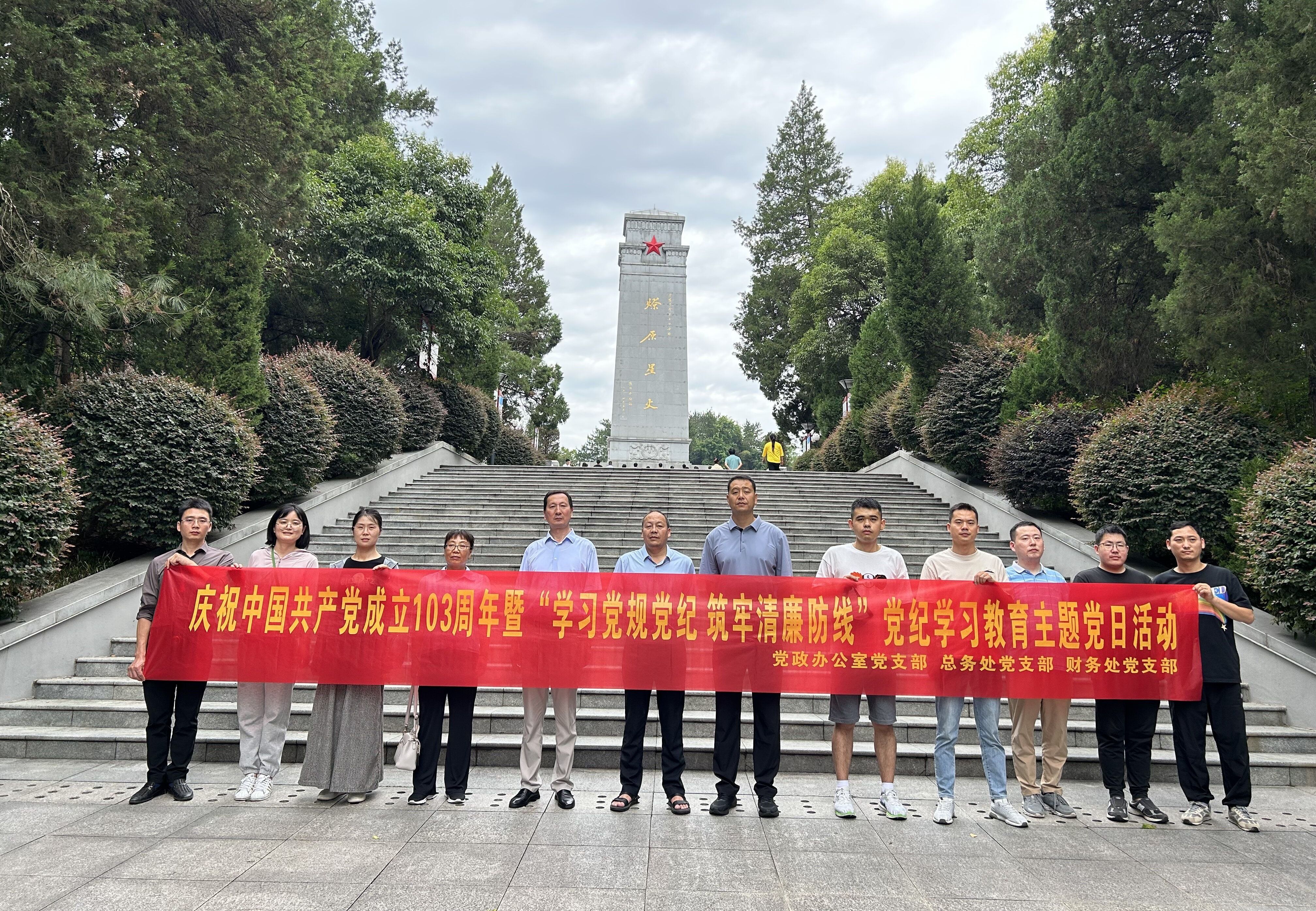 本网讯 为庆祝中国共产党成立103周年,扎实做好党纪学习教育工作,营造崇廉拒腐的浓厚氛围,党政办公室党支部、财务处党支部、总务处党支部于6月23日组织党员赴金寨开展主题党日活动。