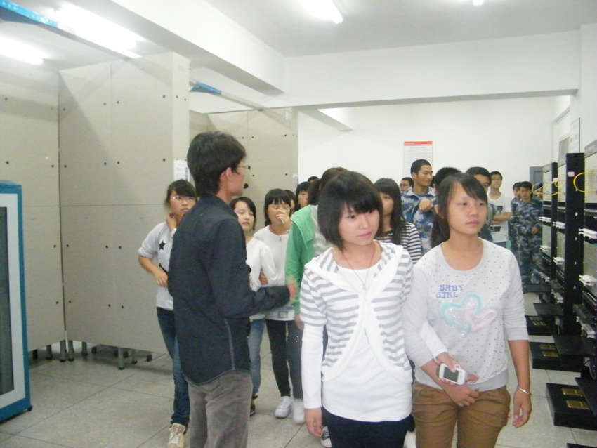 为丰富2011级新生军训教育文化生活,增进新生对专业的了解,信息工程系9月8日晚组织新生参观了校内该系的实训基地、实训室。