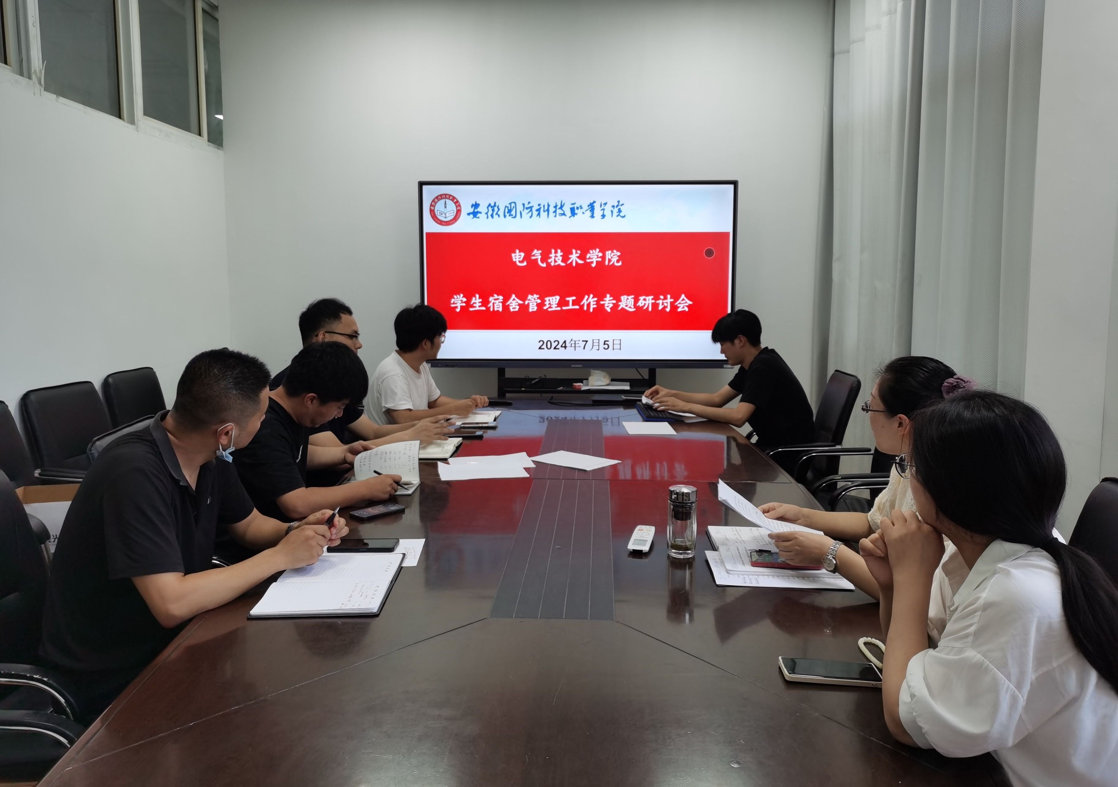 本网讯(电气技术学院 申晓伟)为加强学生宿舍管理,保障宿舍安全文明,7月5日下午,电气技术学院召开学生宿舍管理工作研讨会,电气技术学院党总支副书记张丽及学院全体专职辅导员参加了会议。