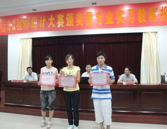 黄存东指出,举办技能竞赛是高职教育贯彻党的教育方针重大举措,是推动专业教学创新与改革、加强校企合作的重要手段,也是展示教学成果的重要平台,通过此次竞赛,锻炼了队伍,提高了学生学习积极性,取得了很好的效果。王文彬对获奖同学给予了鼓励,并指出了存在的不足,表示灵动公司愿意在人才培养方面与学院加强合作,共同育人。随后参会领导为获奖选手颁发了荣誉证书。灵动软件公司领导为获奖者颁发了奖品。