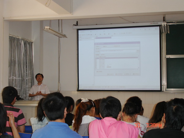 为使学生清晰了解未来工作中专业知识的应用,提升专业技能,2011年5月30日下午,管理工程系工程经济教研室在2号教学楼205举行了一场工程量清单讲座。此次讲座特邀具有七年行业工作经验,完成多项清单及控制价编制的中国建筑科学研究院、软件所安徽分部高级讲师陈晨总工程师主讲。讲座持续了近两个小时,共有来自工程造价专业100多位同学参加学习。