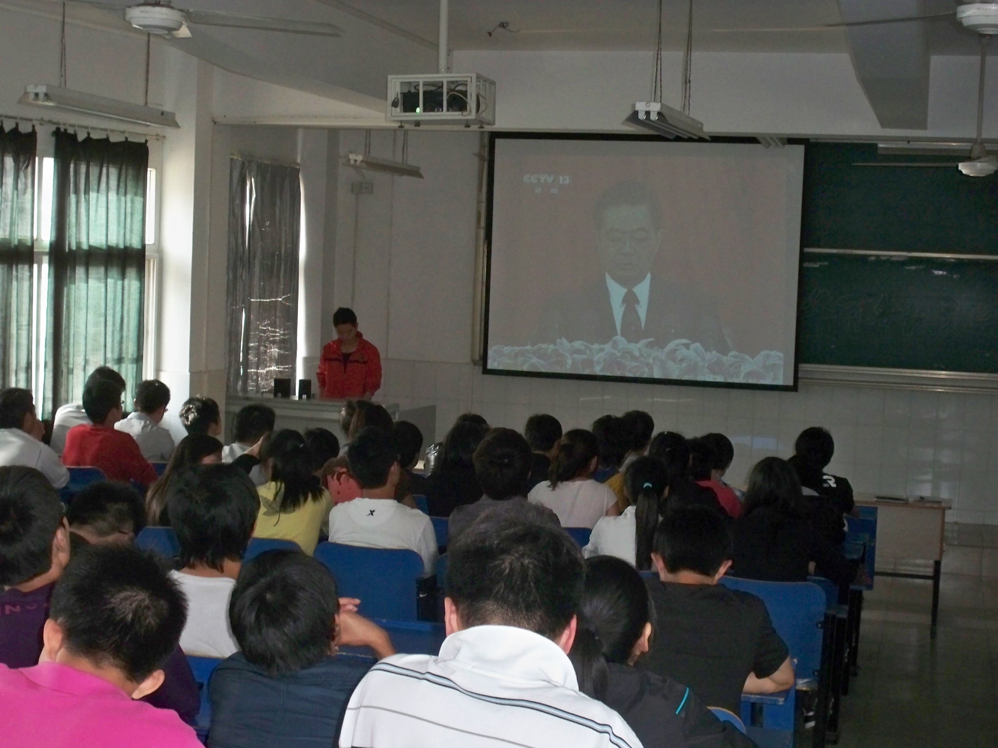 5月4日下午4点,机械系在教二楼105教室召开学生干部大会学习胡锦涛在清华大学百年校庆上的讲话。